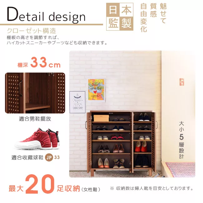 鞋櫃內深度達33公分,男鞋或大尺寸女鞋也放得下